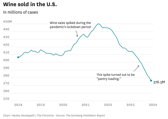 While the supply chain got overloaded with wine during COVID-19, people drink much less alcohol and wine.